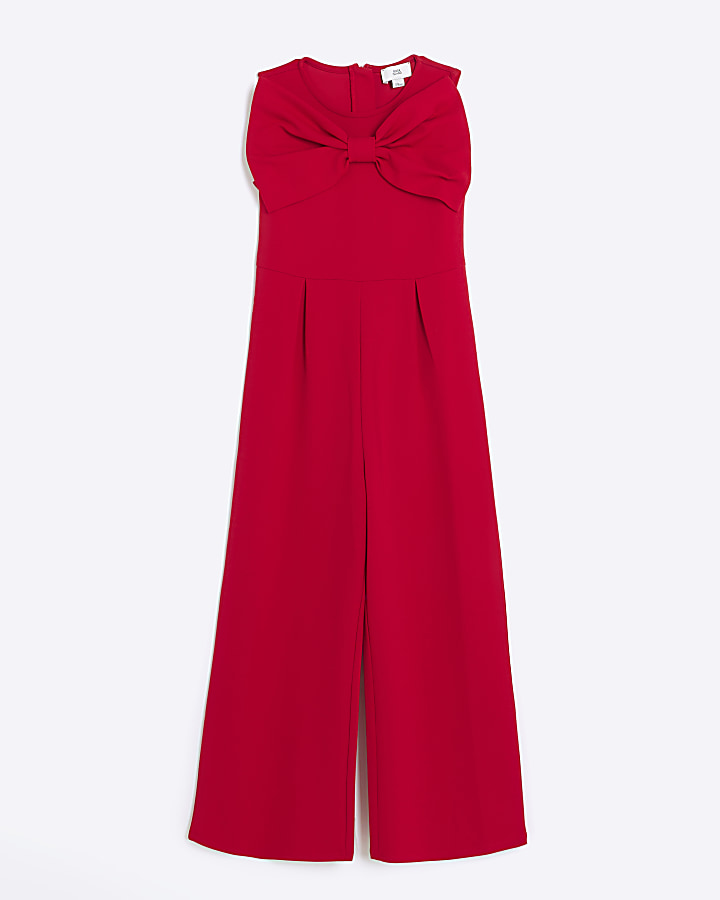 Girls red bow wide leg jumpsuit Very well made.