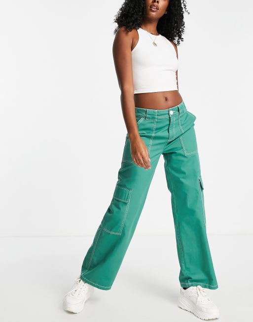 ASOS DESIGN clean cargo trousers in green with contrast stitching Very well made.