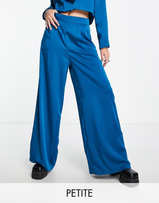 Flounce London Petite satin wide leg trousers in aqua co ord Very well made.