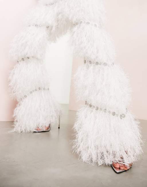 ASOS LUXE faux feather pants with embellishment in white part of Very well made.