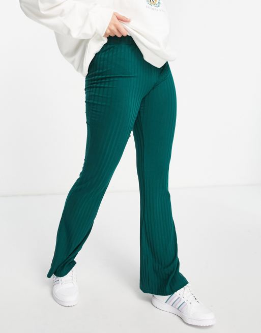 Ribbed Straight Leg Knit Pants in Moss Green Very well made.