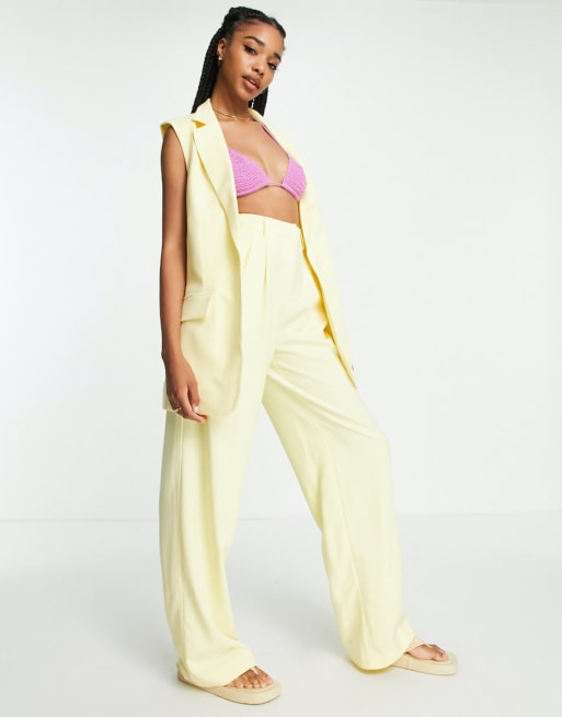 Yellow Silk Wide Leg Pintuck Pants Very well made.