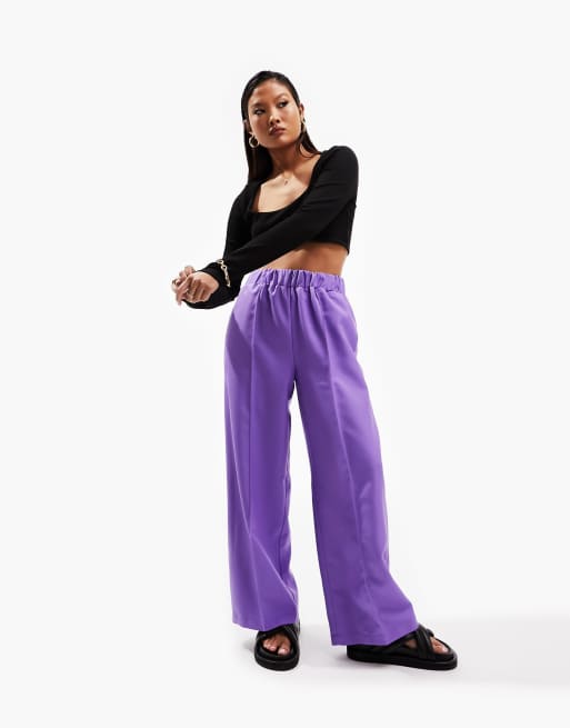 ASOS DESIGN Petite elastic waist tailored trouser in purple ASOS Very well made.