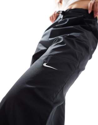 Nike mini swoosh high rise woven trousers in black Very well made.