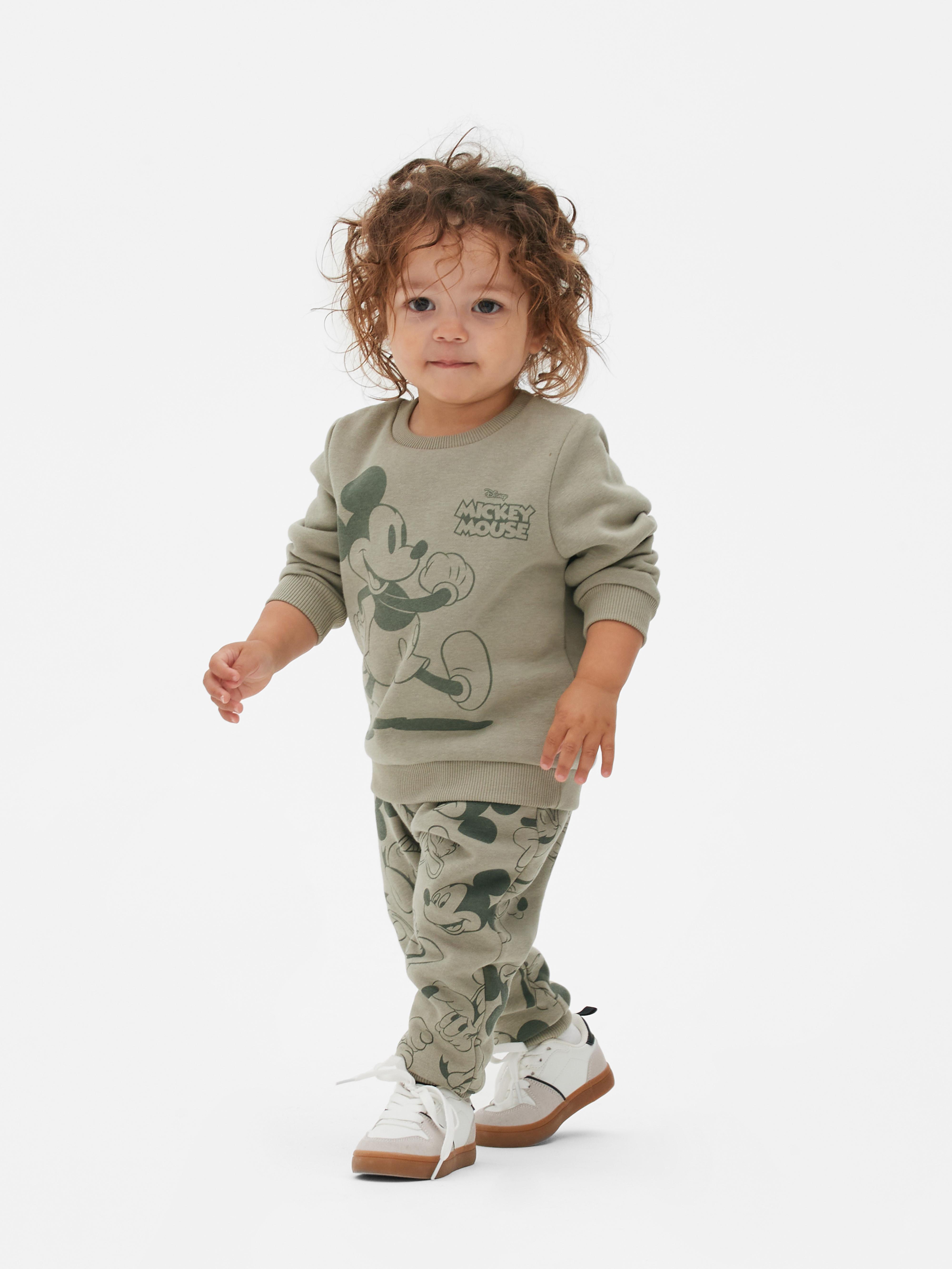 Baby Tan Mickey Mouse Print Sweatshirt Joggers Set Newborn 12mths Very well made.
