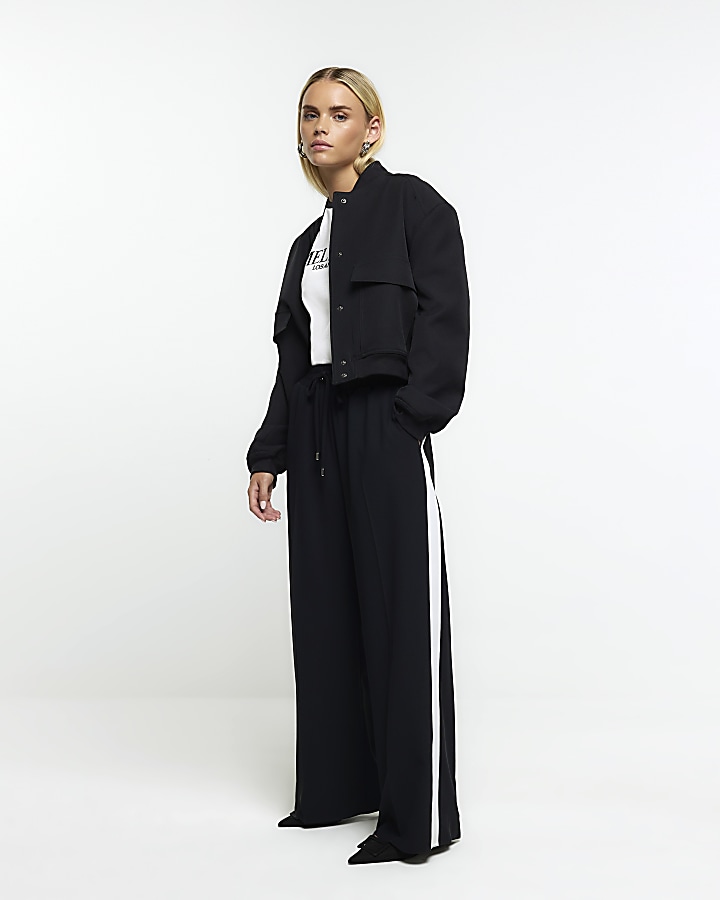 Petite Black Side Stripe Knitted Wide Leg Trousers PixieGirl Very well made.