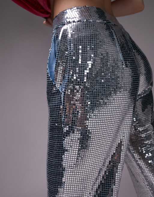 Topshop Tailored flat sequin flare trousers in silver blue Very well made.