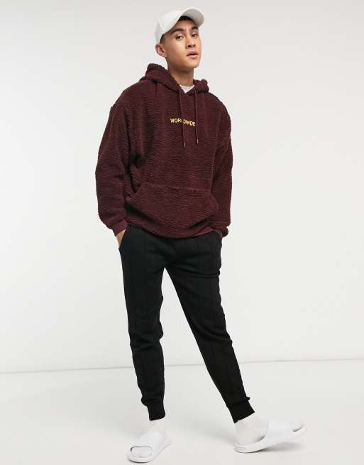 ASOS Daysocial oversized hoodie in teddy borg with large back logo embroidery in brown part of a set Very well made.