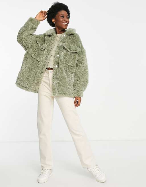 Stradivarius oversized teddy jacket in green ASOS Very well made.