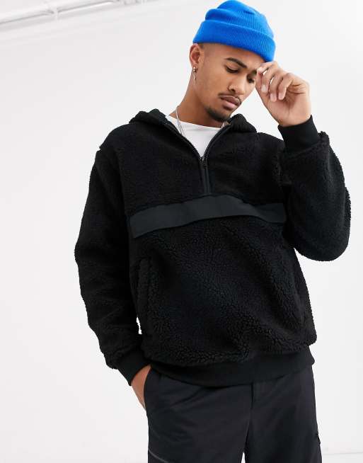 Pull Bear half zip windbreaker with hood in black Very well made.