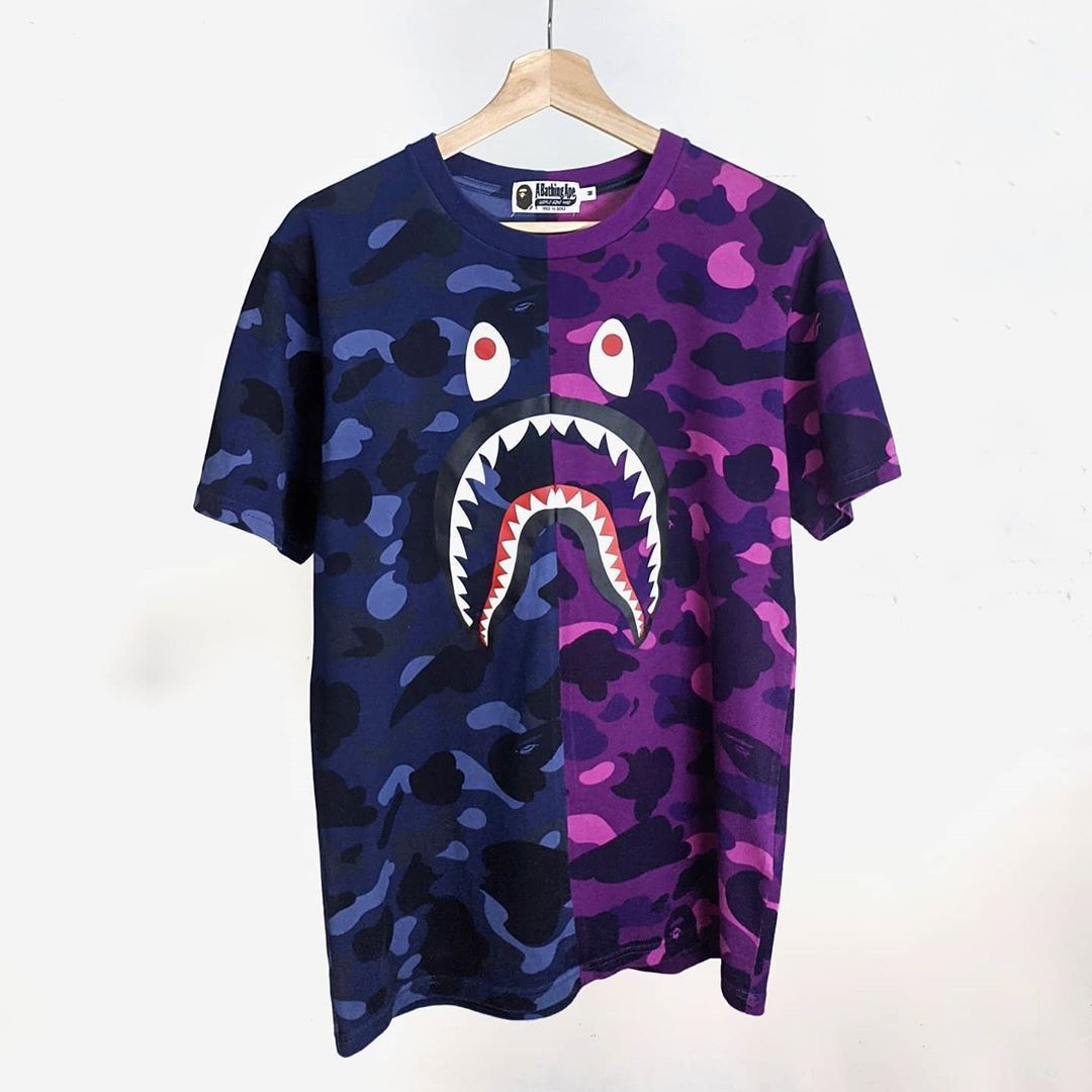 Bape A Bathing Ape Bape Shark Camo Split Tee Purple Blue Grailed Very well made.