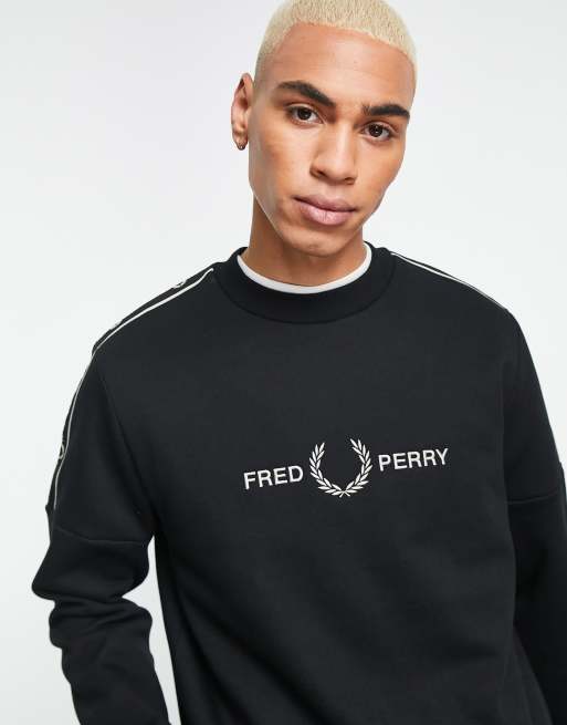 Fred Perry taped sleeve sweatshirt in black Very well made.