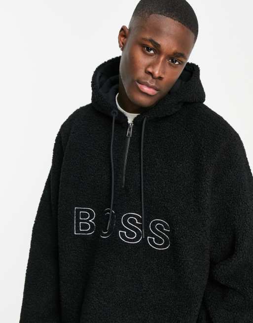 BOSS Zetedy borg overhead hoodie in black Very well made.