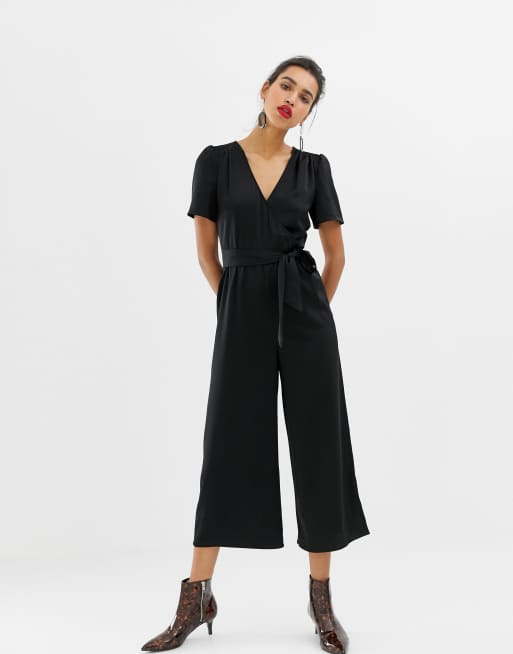 Warehouse wide leg jumpsuit with tie front in black Very well made.