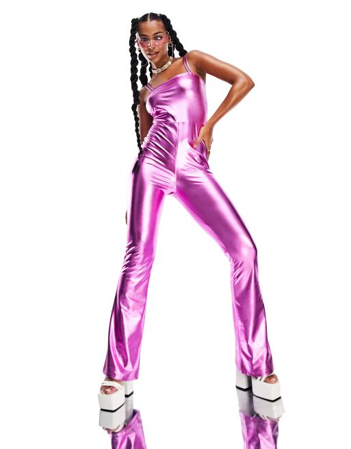ASYOU festival strap flare jumpsuit in pink foil Very well made.