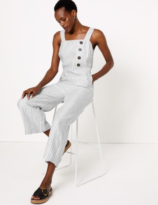 Pure Linen Striped Utility Jumpsuit Very well made.