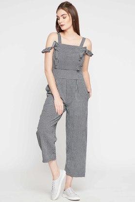 Buy RARE Black Checks Cold Shoulder Polyester Women s Calf Length Very well made.