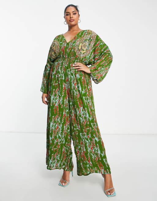 River Island Plus embellished floral jumpsuit in green Very well made.