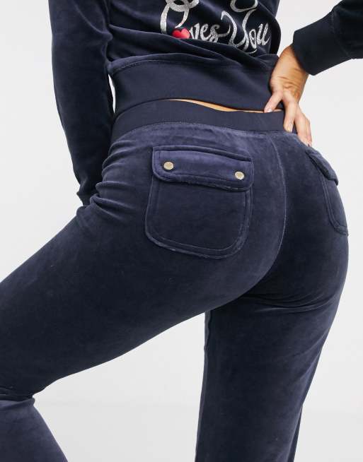 Juicy Couture NAVY Pretty Thing Zuma Velour Track Pants US Large Very well made.