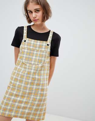 Monki Check Mini Overalls Dress in Yellow ASOS Very well made.