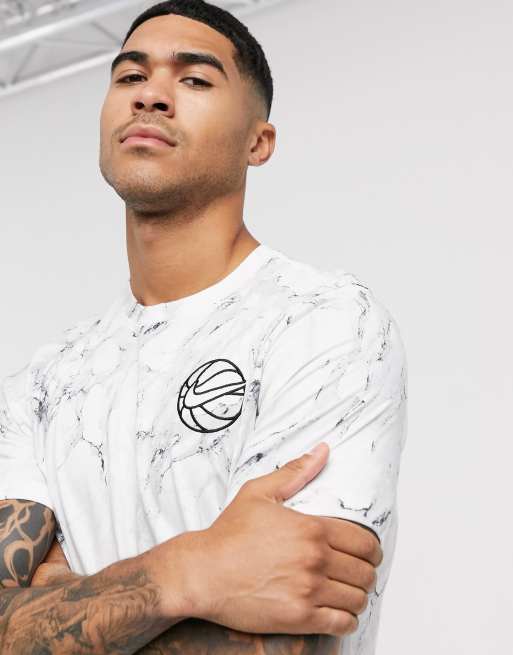 Nike Basketball Swoosh logo T shirt in white marble Very well made.