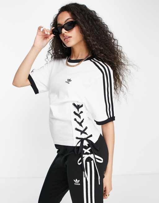 adidas Originals Bellista Lace Insert T shirt Dress in Black Lyst Very well made.