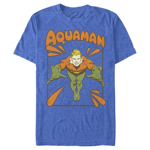 Men s Justice League Aquaman Vintage T Shirt Royal Blue Heather Small Very well made.