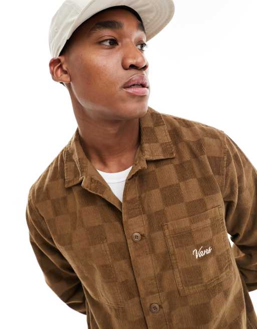 Vans corduroy checkerboard print long sleeve shirt in tonal brown Very well made.