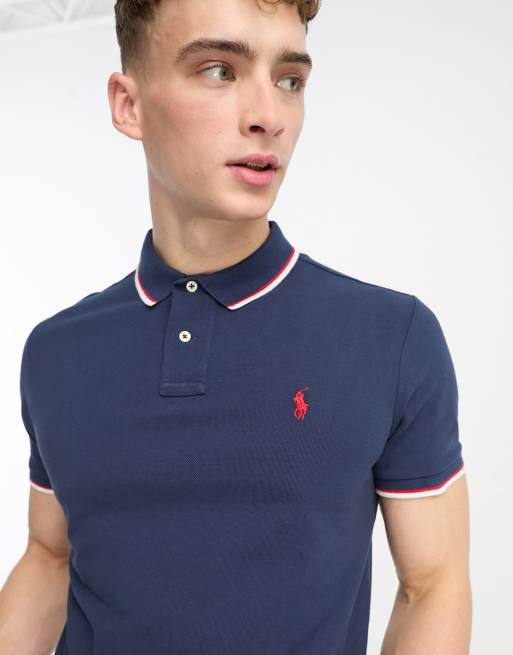 Polo Ralph Lauren icon logo tiped pique polo custom fit in navy Very well made.