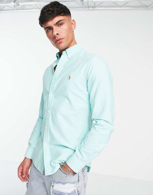 Polo Ralph Lauren slim fit oxford shirt with pony logo in light green Very well made.