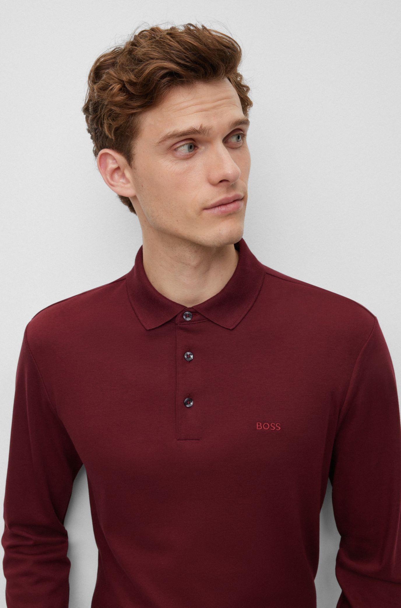 BOSS Long sleeved slim fit polo shirt with logo patch Very well made.