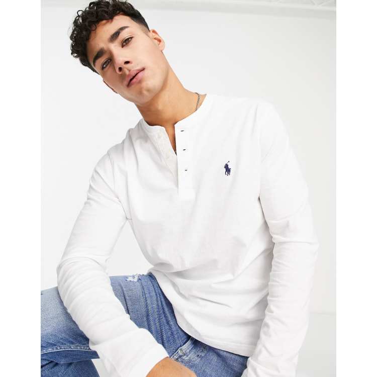 Polo Ralph Lauren player logo slub henley long sleeve top in white Very well made.