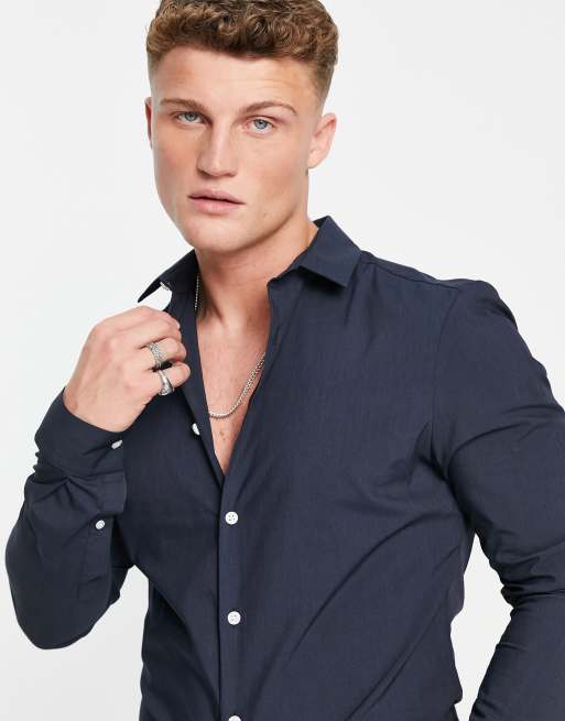 ASOS DESIGN slim fit oxford shirt with band collar in navy Very well made.