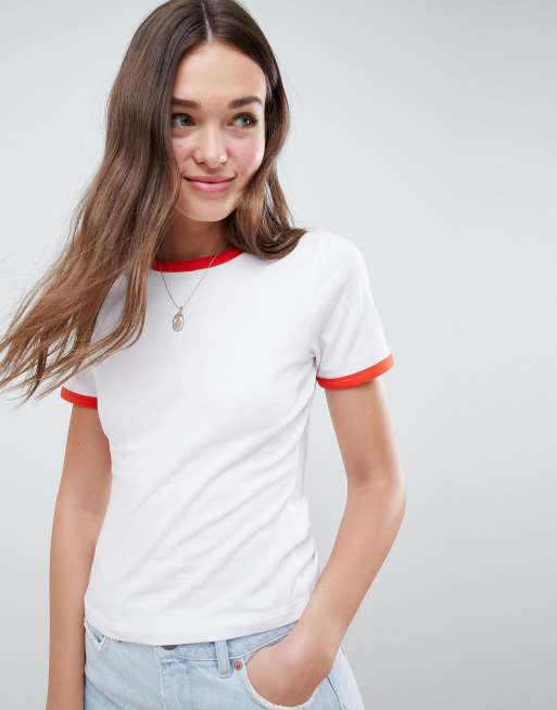 ASOS DESIGN t shirt with contrast trim in in white red Very well made.