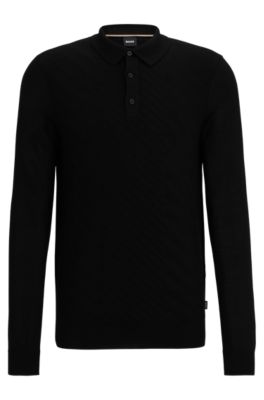 BOSS Wool blend polo shirt with graphic jacquard structure Very well made.