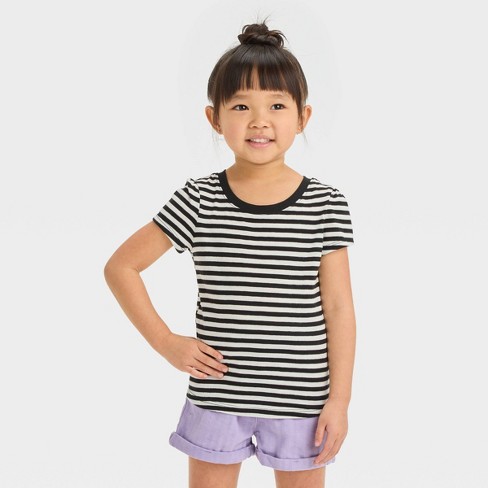 Toddler Girls Striped Short Sleeve T Shirt Cat Jack Black 12M Very well made.