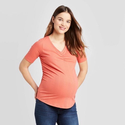 Maternity Elbow Sleeve V Neck Textured Rib T Shirt Isabel Maternity by Ingrid Isabel Red M Very well made.