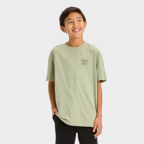 Boys Short Sleeve Graphic T Shirt Chill Out art class Olive Green XS Very well made.