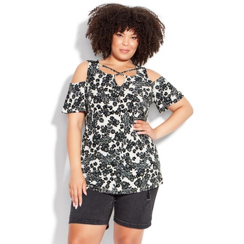 EVANS Women s Plus Size Cold Shoulder Print Top ivory 22W 24W Very well made.
