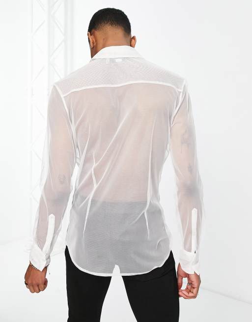 ASOS DESIGN skinny mesh shirt with placement embroidery in white Very well made.