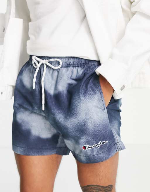 Champion small script chest logo shorts in black tie dye ASOS Very well made.