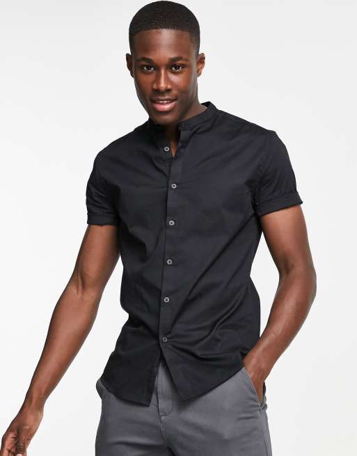 ASOS DESIGN skinny fit shirt with band collar in black ASOS Very well made.