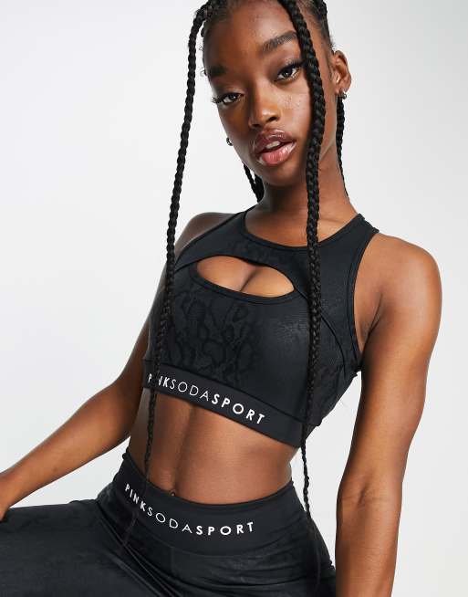 Pink Soda Sport cut out medium support sports bra in black python Very well made.