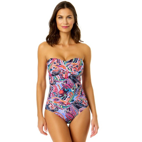 Anne Cole Women s Paisley Parade Twist Front Shirred One Piece Swimsuit Multi 16 Very well made.