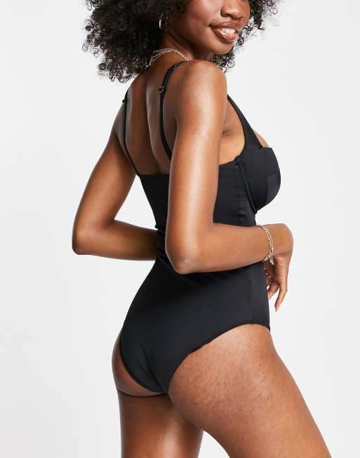 ASOS DESIGN fuller bust molded underwired swimsuit in black dd g Very well made.