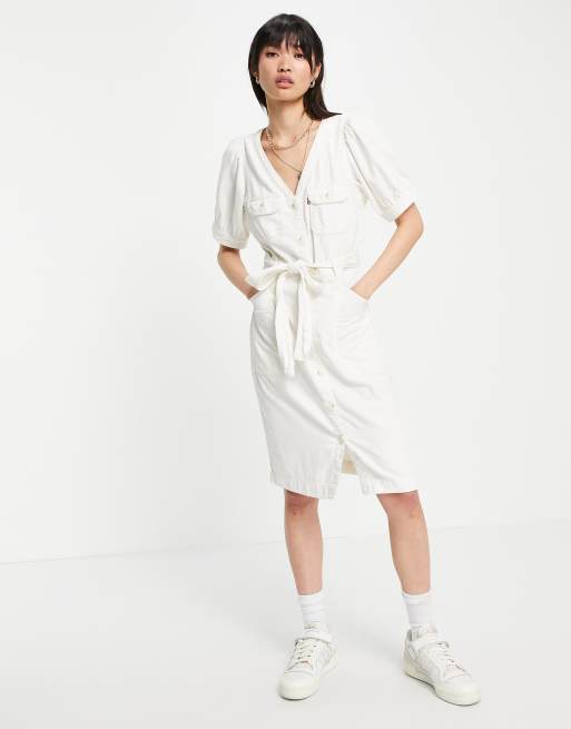 Levi s bryn balloon sleeve midi dress in white Very well made.