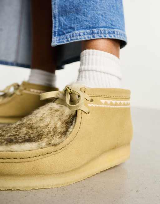 Clarks Originals Wallabee boots in tan faux fur Very well made.