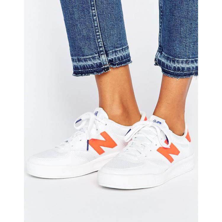 New Balance 300 Court Trainers In White And Neon Orange Very well made.