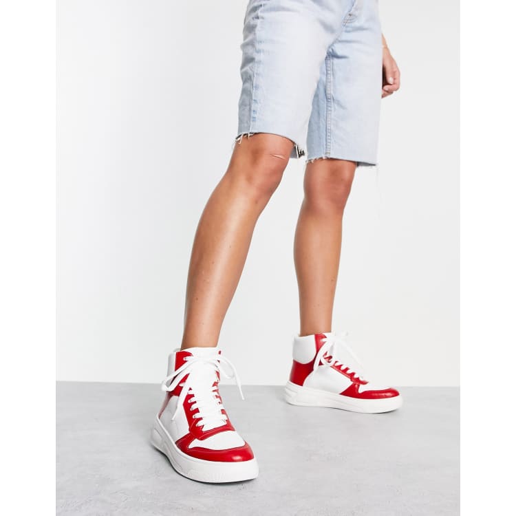 ASOS DESIGN Delta skater high top sneakers in white red Very well made.