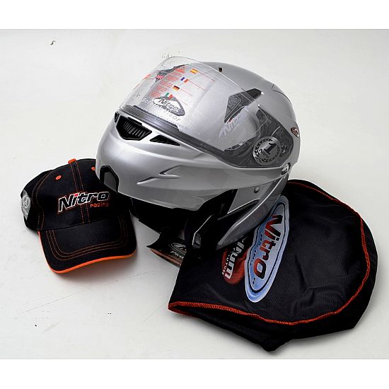Flip up helmet silver NITRO F 340 F340 Very well made.